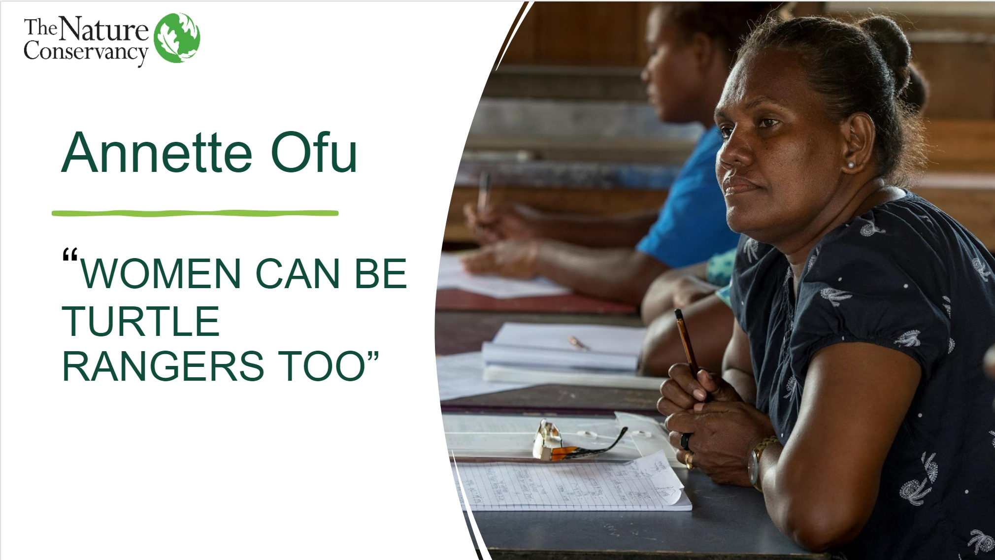 In the Coral Triangle region, women champions are leading the way in conservation on the frontlines. Madlyn Ero, a conservation practitioner at The Nature Conservancy Field office in the Solomon Islands, discussed how female rangers are saving leatherback sea turtles in her country. She noted that although conservation activities in the Solomon Islands have traditionally involved mostly men, the Kawaki Women’s Network in the Arnavon Islands have proven that women can be deeply involved in biodiversity conservation in the field, too. The Kawaki women have led community outreach activities to educate local communities about leatherback sea turtles, participated in training about the species, and have gone out themselves to monitor sea turtle nesting sites at night. The women help monitor the population and nesting areas of the turtles in the Arnavon and with their success have also grown to include 15 women members this year.
