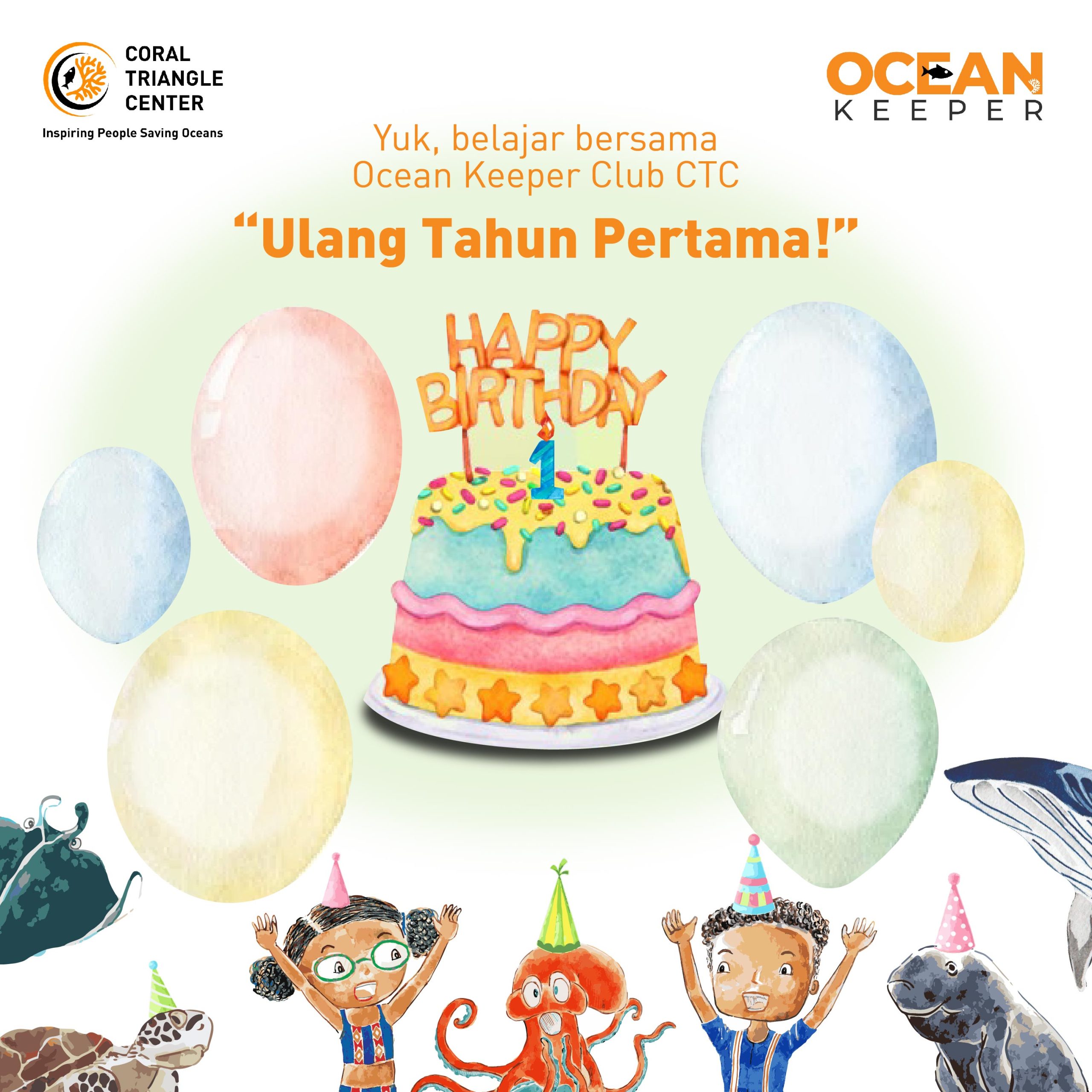 The Ocean Keeper Club’s birthday celebration was held at the CTC’s Center for Marine Conservation in Sanur, Bali. The event started at 3 PM and lasted for nearly two hours, attended by 55 participants who joined either in person or online. These kids actively participated in facilitated group discussions, focusing on the topic of the most interesting action to protect the oceans.