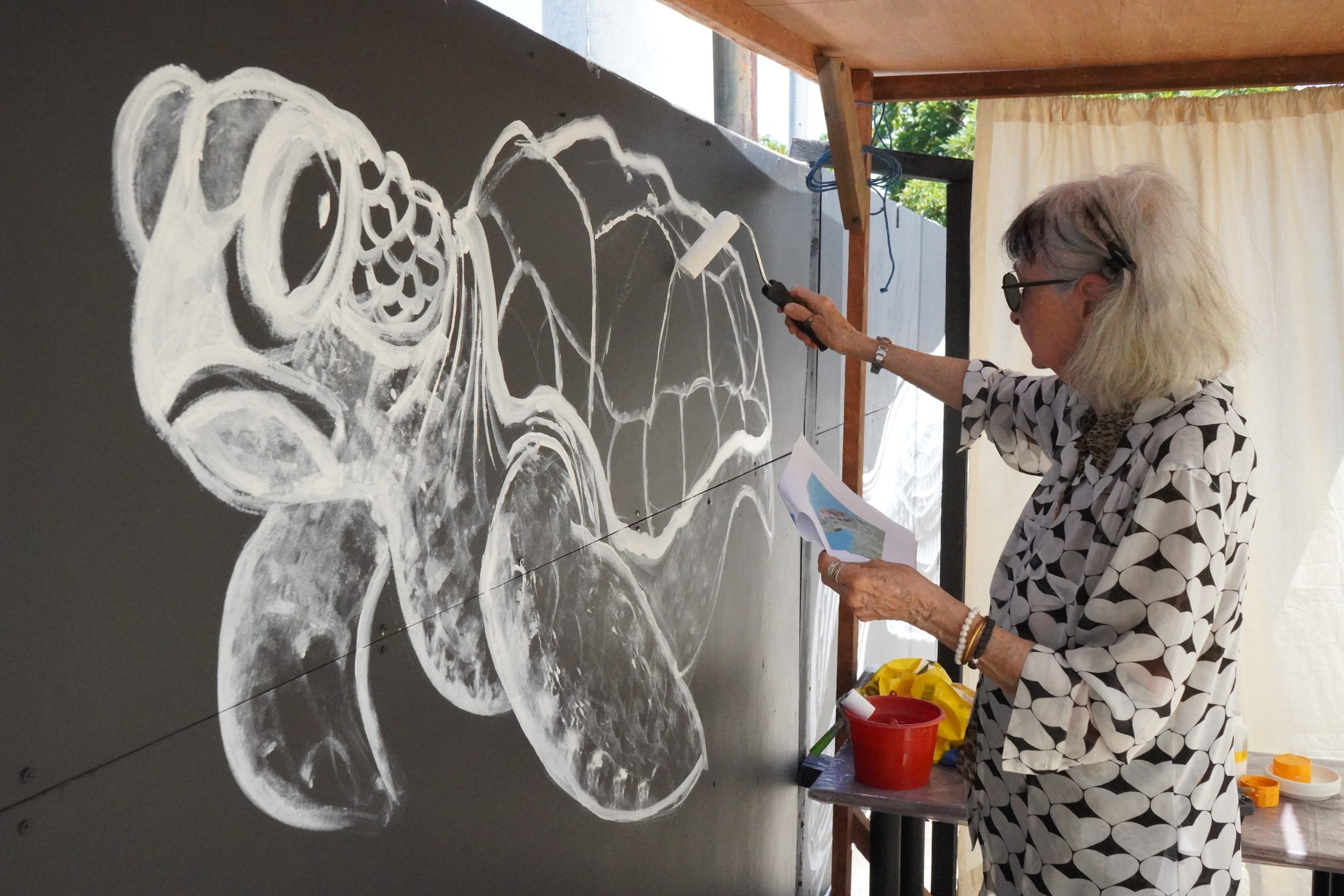 At 87, the vibrant Dutch artist Anne van Borselen has returned to Bali with her signature energy, volunteering once again at Coral Triangle Center (CTC). This time, Anne dedicated her talents to completing vivid images of marine animals on CTC’s entrance fence.