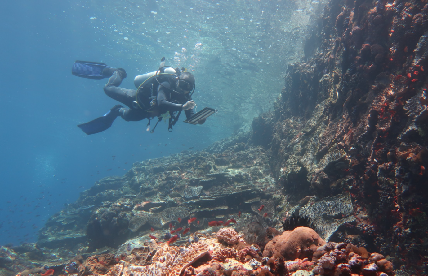 Over the course of 34 dives, we recorded coral reef resilience data at 24 sites using 15 key indicators developed by Dr. Salm. These indicators helped us understand reef resilience in terms of both resistance to stress and the ability to recover afterward. For each site, we cross-checked our findings with Pak Rod’s personal logbook—an invaluable resource built over decades of scientific observation.
