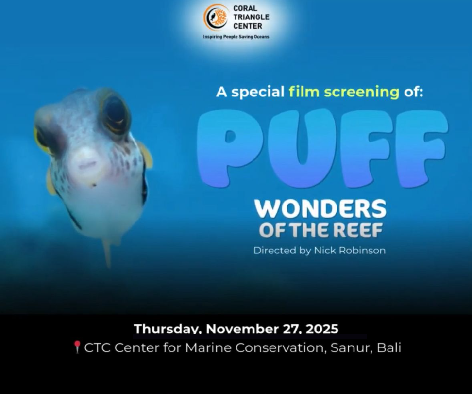 On Thursday, 27 November 2025, CTC hosted a Movie Screening Event featuring “Puff: Wonders of the Reef”, a film by Nick Robinson, held at the CTC Center for Marine Conservation in Sanur. The movie captivated the audience with its visually rich storytelling and engaging portrayal of coral reef ecosystems. Through the film, more than 60 participants were introduced to the fascinating underwater world and gained a deeper understanding of marine life, reef dynamics, and the importance of protecting ocean ecosystems. The storytelling format made complex ecological concepts accessible and engaging for audiences of different ages and backgrounds.