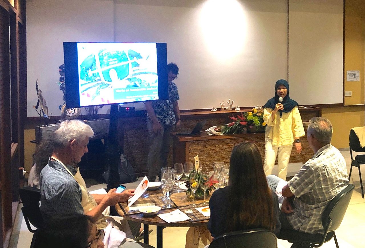 Following the demonstration, Nur Ahyani from WWF Indonesia gave a talk on sustainable seafood principles and how consumers can identify and access sustainable seafood in Bali. This was followed by a wine pairing experience under the guidance of Ni Nyoman Kertawidyawati, president of the Indonesia Sommelier Association, Bali chapter. Sponsored by Hatten Wines, the wine pairing portion focused on teaching participants how to pair food dishes with wine to enhance their dining experience.