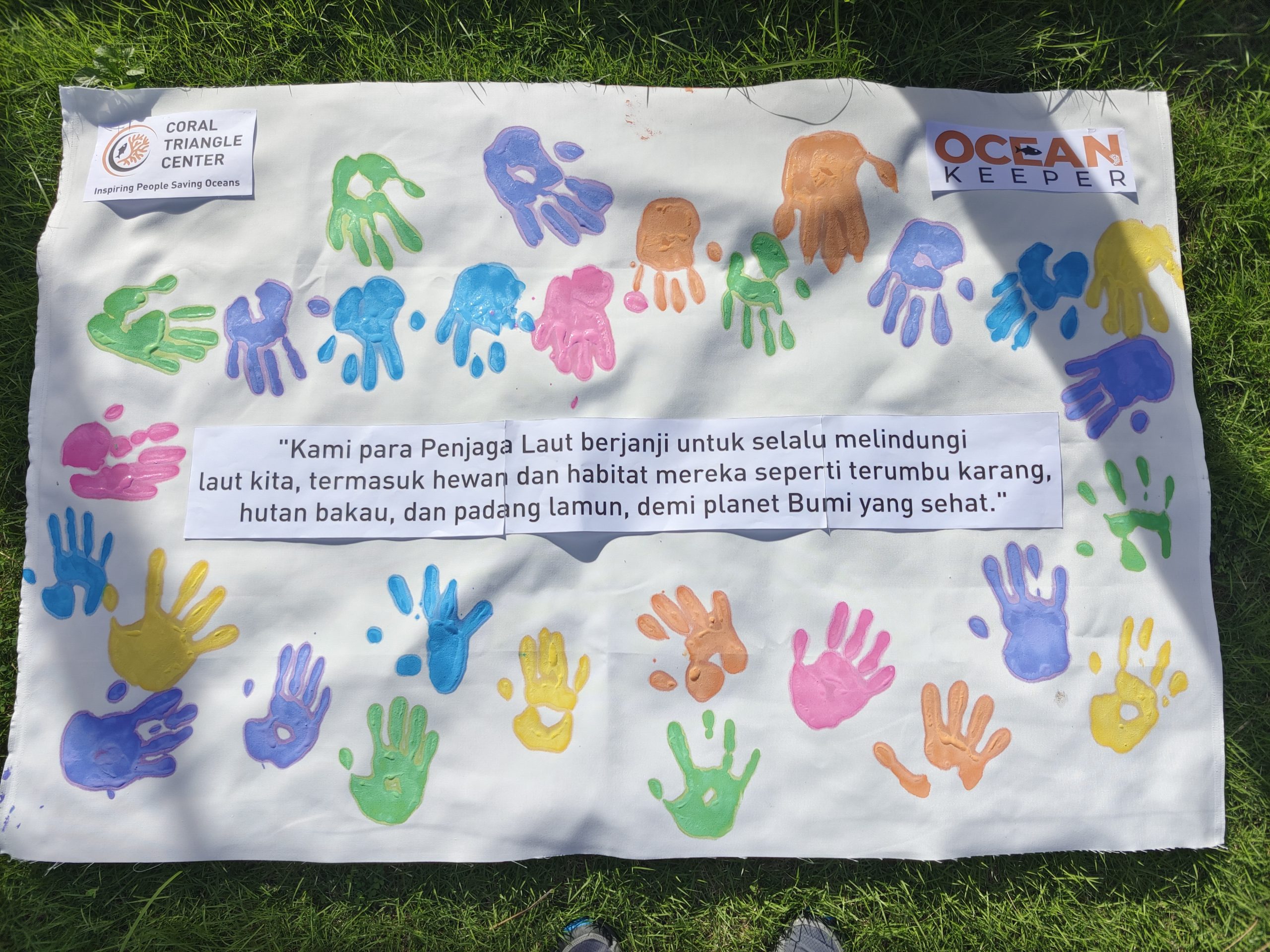 At the end of the session, all participants were asked to recite a shared pledge together and paint their handprints using eco-friendly paints. As Ocean Keepers, they promise to always protect the seas, including the animals and their habitats such as coral reefs, mangroves, and seagrass beds, to keep the planet healthy.
