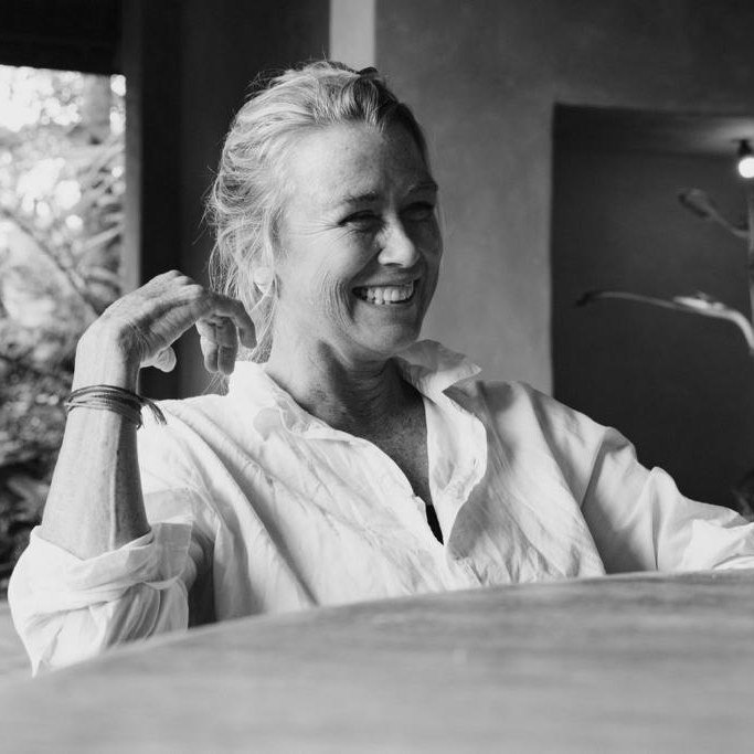 Her method of working is decided by the material she uses. She loves working with wood blocks that she designs and has carved by local artisans in Bali. She prints them onto rice paper and the joy comes in the application of colours that she applies in a wash style. She also